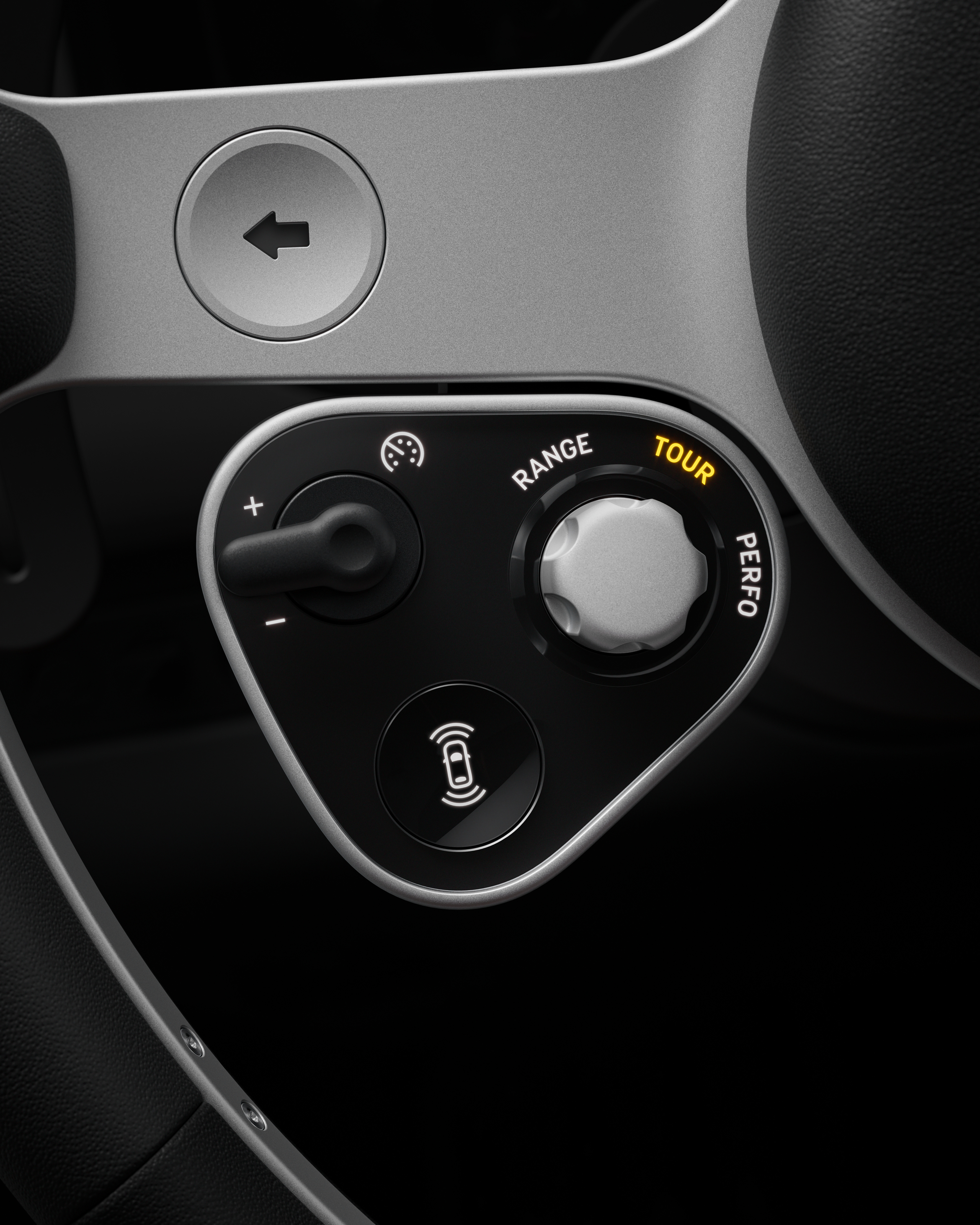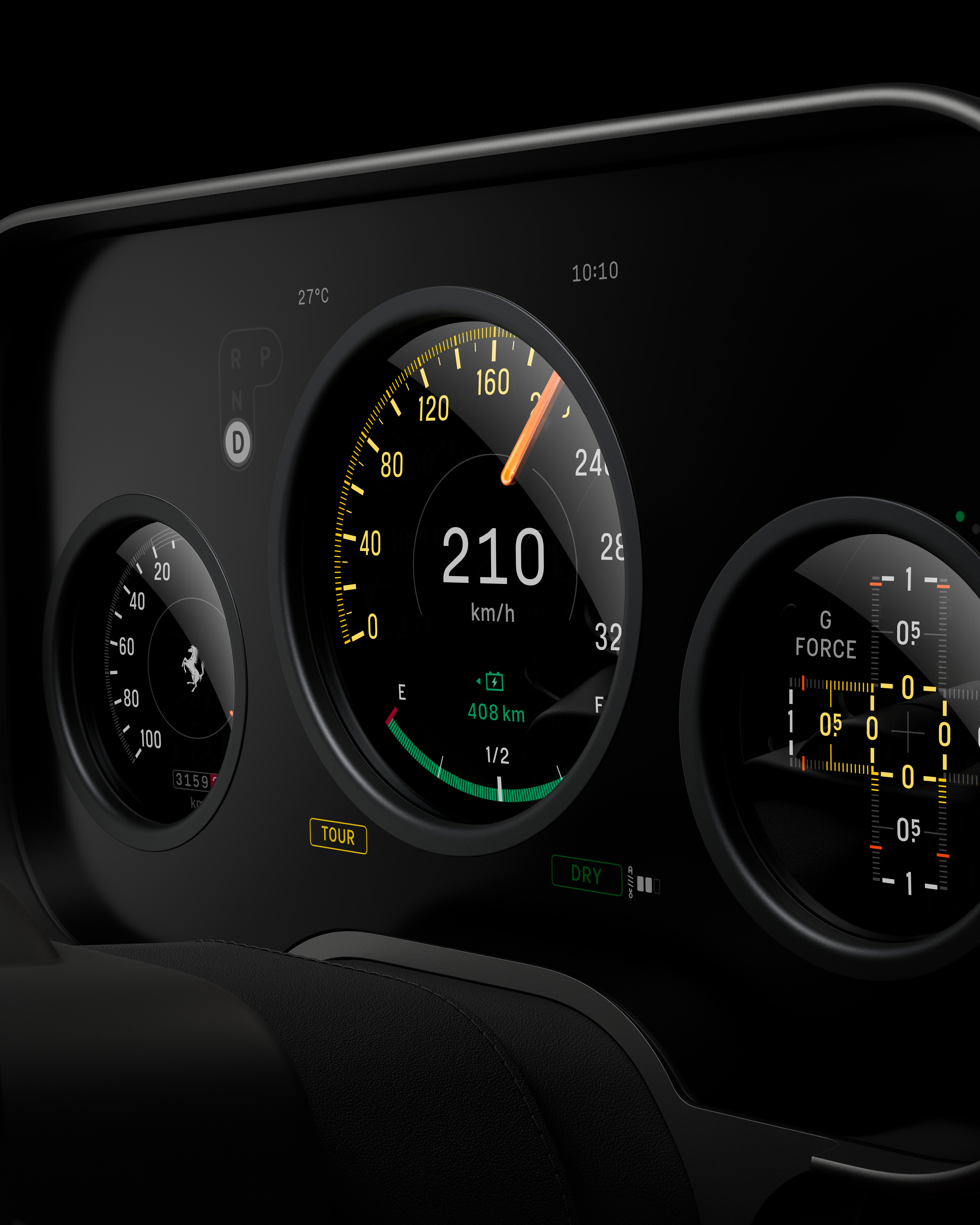 Genanvendt aluminium, mekaniske kontakter og Gorilla® Glass skaber et minimalistisk cockpit med fokus på fysiske input og klare visninger. Det lette tre-egers rat, glaskeyen med E Ink-display samt multigrafen med bevægelige visere forener klassisk instrumentering og moderne teknologi. Den endelige præsentation af eksteriøret finder sted i Italien i maj 2026.